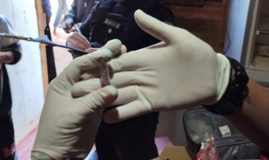 Durante la requisa del inmueble, se halló un envoltorio con una sustancia amarillenta que, tras ser sometida a test por parte de la División Drogas Peligrosas, dio positivo para clorhidrato de cocaína tipo “pedra”, con un aforo estimado de 114.300 pesos.