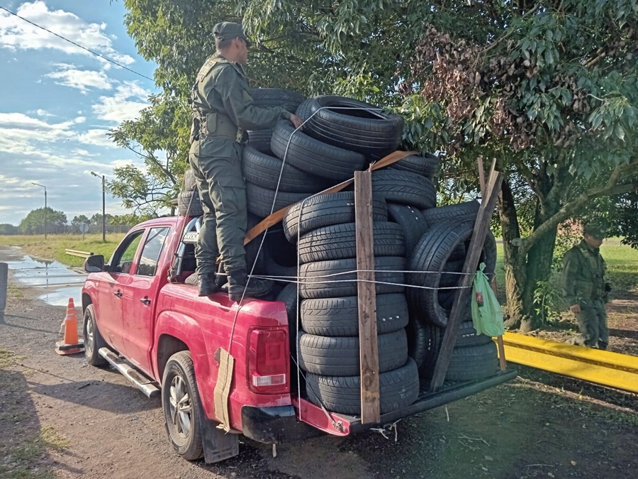 El personal procedió a detener la marcha de una camioneta conducida por un individuo de nacionalidad argentina, quien se encontraba acompañado de un menor, que se trasladaba desde la ciudad misionera de Puerto Iguazú hasta la ciudad de La Rioja, constatando a simple vista que transportaba una gran cantidad de cubiertas de diferentes marcas y medidas. Las unidades, acondicionadas en el compartimiento de carga, se aseguraban con sogas y sobresalían de los límites del vehículo.
