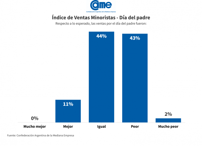 Los datos surgen del relevamiento realizado por CAME entre sábado y hoy domingo entre 245 comercios del país.