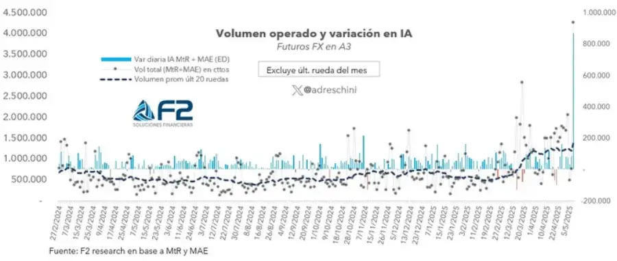 "Los futuros se derritieron con un volumen inusualmente alto, esa es una de las razones que llevan a pensar que hubo intervención con el objeto de anclar expectativas", manifestó Andrés Reschini, de F2 Soluciones Financieras.