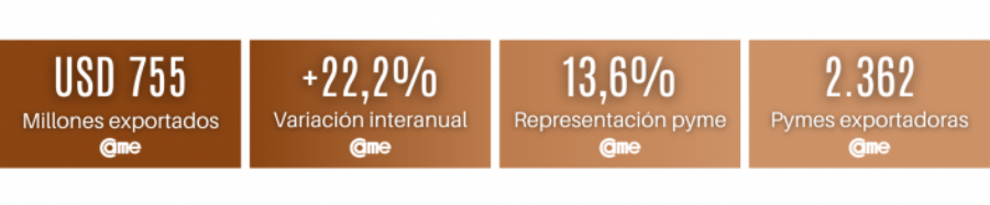Así surge del Monitor de Exportación PyME (MEP), un indicador elaborado por el sector de Estadísticas e Informes de la Confederación Argentina de la Mediana Empresa (CAME), para medir las exportaciones de las pequeñas y medianas empresas de la República Argentina, en base al monitoreo mensual de las operaciones de las empresas argentinas en el comercio exterior, discriminando por su condición PyME declarada ante la Secretaría de la Pequeña y Mediana Empresa, Emprendedores y Economía del Conocimiento, dependiente del Ministerio de Economía de la Nación.
