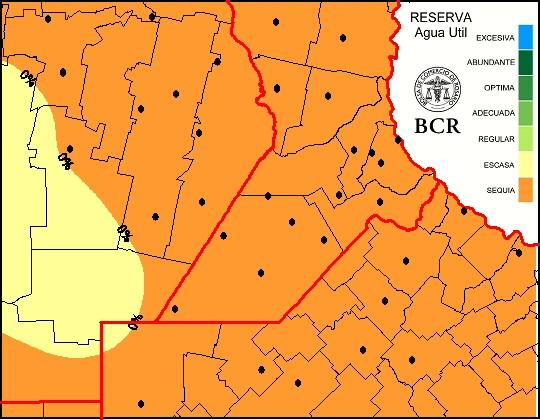 Los mapas de condición hídrica siguen mostrando características muy negativas en toda la zona GEA, con condiciones de sequía en la mayor parte de la región y reservas escasas en el resto en una acotada porción. Para alcanzar niveles óptimos de humedad edáfica en las próximas 2 semanas se necesitarían registros de más de 140mm en toda la región GEA, con núcleos máximos que alcanzan los 180mm, situación muy difícil de revertir.