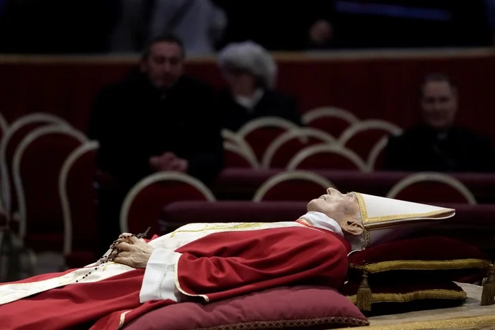 Los restos del primer pontífice alemán de la era moderna fueron trasladados en la madrugada de la pequeña capilla privada del Monasterio Mater Ecclesiae, donde residió desde su renuncia en 2013, en los jardines del Vaticano, a la basílica en el curso de una ceremonia privada, indicó la oficina de prensa del Vaticano.