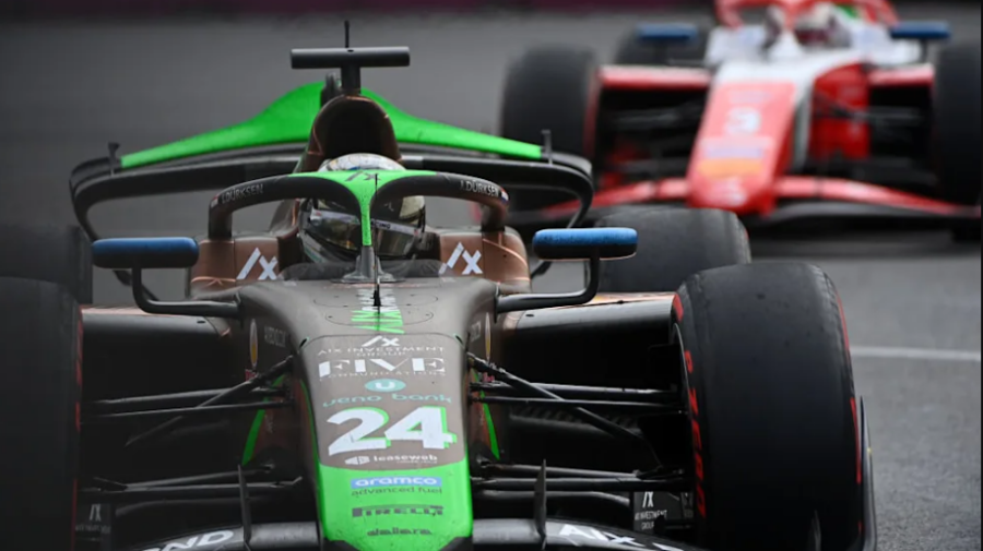 El Dallara F2 2024-Mecachrome del AIX Racing con el que Duerksen ganó este año en Baku. (Foto: Prensa F2/Getty Images)