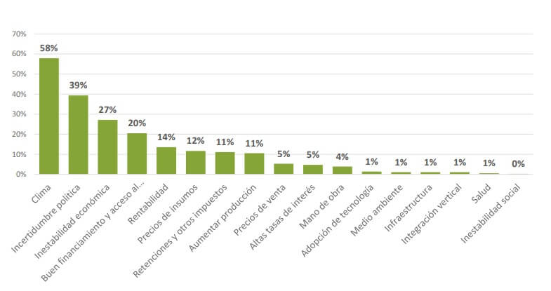 A diferencia de otras encuestas elaboradas por esta casa de estudios, el clima ocupa el primer lugar como el mayor desafío que enfrentan los productores y supera, por primera vez, a la incertidumbre política y a la inestabilidad macroeconómica.