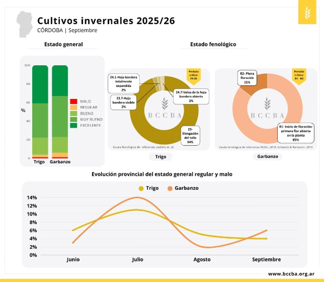 De acuerdo con un relevamiento realizado entre el 8 y el 15 de septiembre por el Departamento de Información Agronómica, la provincia de Córdoba podría alcanzar la mayor producción de trigo de su historia: 5,7 millones de toneladas, con un rendimiento promedio de 35 quintales por hectárea.