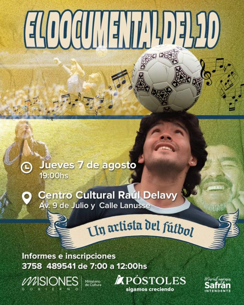 "El Documental del 10", llega a la ciudad de Apóstoles: La obra recorre la vida y la influencia de Maradona a través de testimonios de más de 40 artistas y referentes culturales nacionales