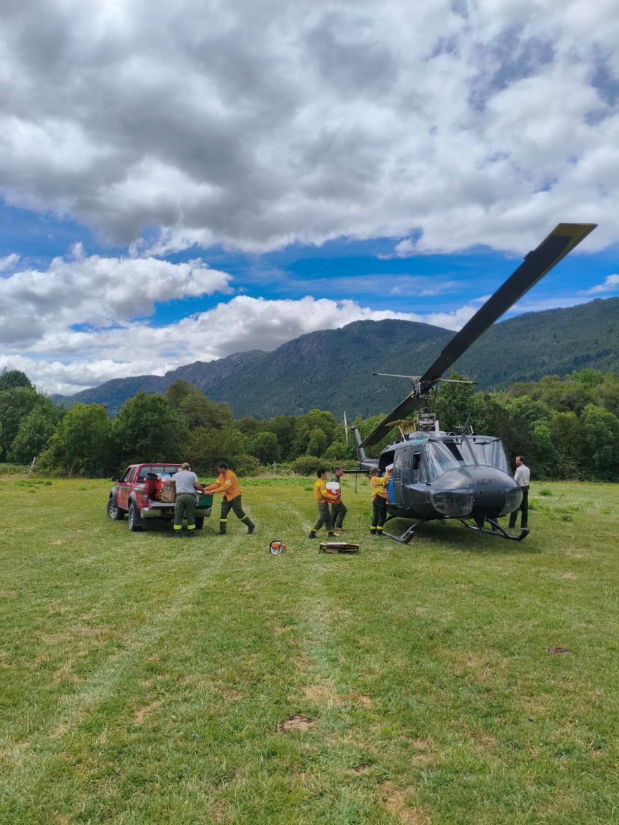 En otro frente, en el Parque Nacional Los Alerces, personal del mismo elemento ejecuta reconocimientos aéreos que contribuyen a la toma de decisiones en el combate contra los focos ígneos y participa del apoyo sanitario mediante la instalación de una carpa destinada a la atención de brigadistas.