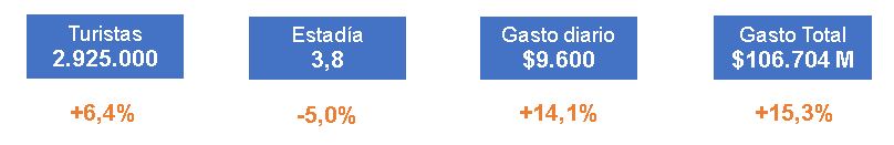 lLa estadía media fue de 3,8 días, levemente inferior al año pasado (4 días) que responde en parte a la intención de reducir costos, pero también a que se eligieron destinos más lejanos que lo que fue la temporada pasada, cuando todavía el COVID estaba amenazante.