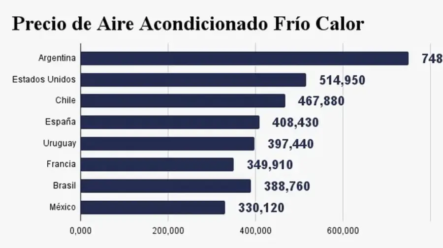 Los precios comparativos de los aires con el resto de la región, según detalló el Gobierno Nacional.