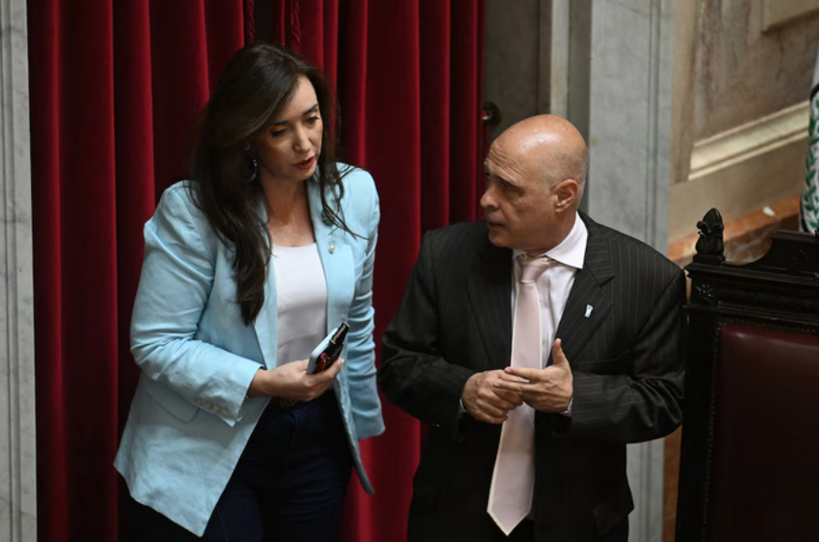 Victoria Villarruel comandó la sesión extraordinaria y fue reemplazada en varias ocasiones por el senador libertario y presidente provisional de la Cámara alta, Bartolomé Abdala (Maximiliano Luna)