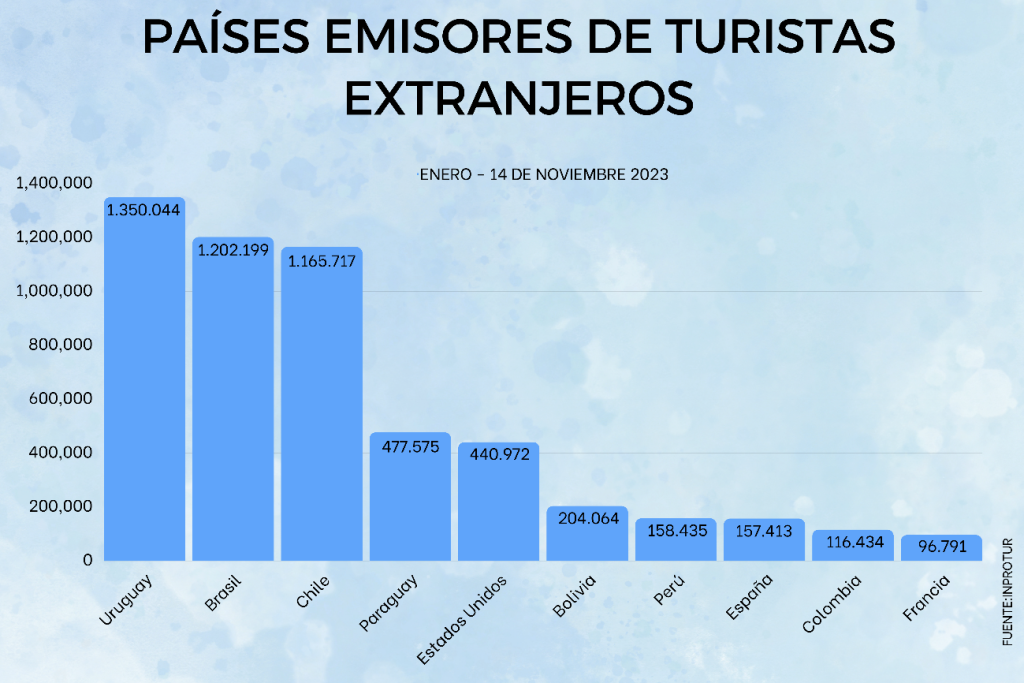 En este contexto, Sosa hizo énfasis en los casos de Uruguay, Estados Unidos, Chile, México, Canadá y Brasil, quienes tuvieron destacados números de ingresos aún por encima de lo ocurrido en los últimos 13 años. Al analizar el período entre enero y octubre de 2023, contra los mismos períodos de los últimos 13 años, estas naciones son las que tienen mejores porcentajes de recuperación y crecimiento, así como de ingresos turísticos.