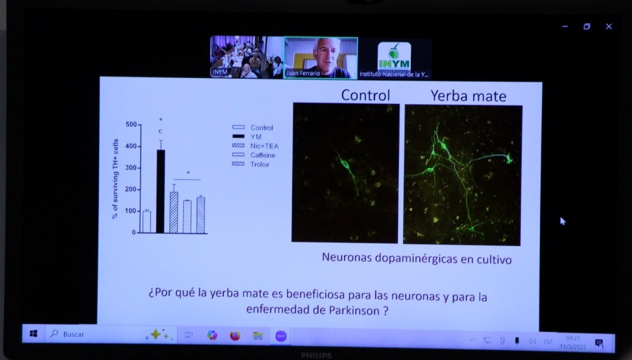La buena noticia, aunque no nueva, pero si ratificada, es que la Yerba Mate es un alimento aliado en la prevención de la enfermedad. El doctor Juan Ferrario, del Instituto de Biociencias, Biotecnología y Biología Traslacional (iB3) de la Universidad de Buenos Aires, presentó este martes 11 de marzo ante el Directorio del Instituto Nacional de la Yerba Mate (INYM) , en Posadas, Misiones, una actualización del estudio - financiado en parte por el Instituto - que viene realizando junto a su equipo a través del cual ya se comprobó el efecto neuroprotector de extractos de yerba mate en experimentación.