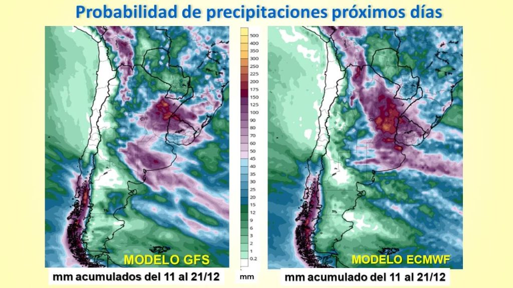 Del mismo modo, el Centro de Investigación en Recursos Naturales (CIRN) del INTA, donde está el Instituto de Clima y Agua, afirmó que “importantes perspectivas de precipitaciones se presentan los próximos días en amplias áreas productivas del país, según varios modelos internacionales”.
