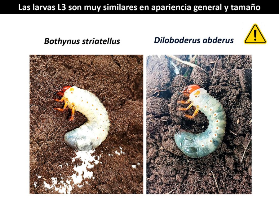 De acuerdo a la especialista, la etapa 3 de las larvas (L3) de B. striatellus es la que suele ser confundida con D. abderus. “En ese estadío estas plagas son muy similares en tamaño, coloración y apariencia”, comenta Niveyro.