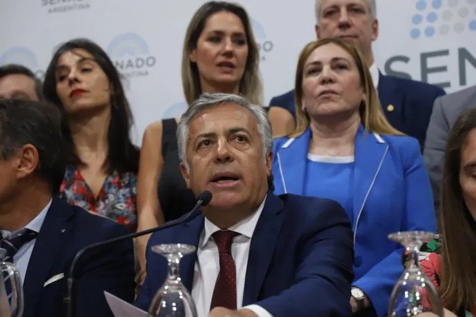 "Por ello, este Interbloque no va a convalidar una maniobra sumamente lesiva, ni vamos a permitir ser arrastrados a un conflicto de poderes que solo traerá como consecuencia la profundización de la división de los argentinos y el agravio a la paz social", sostiene el texto, que fue leído por el jefe del interbloque de JxC en el Senado, Alfredo Cornejo.