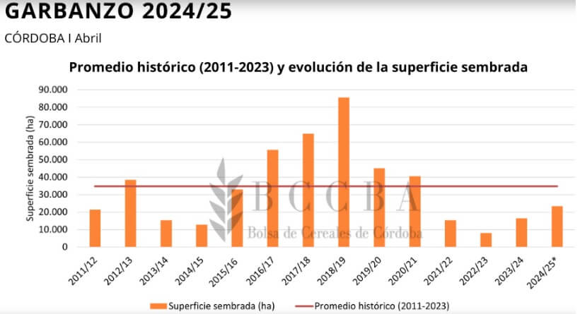 En concreto, la primera proyección de la entidad bursátil es un área garbancera en el norte cordobés de 23.400 hectáreas, lo que implica en términos reales unas 7.000 más que el año pasado.