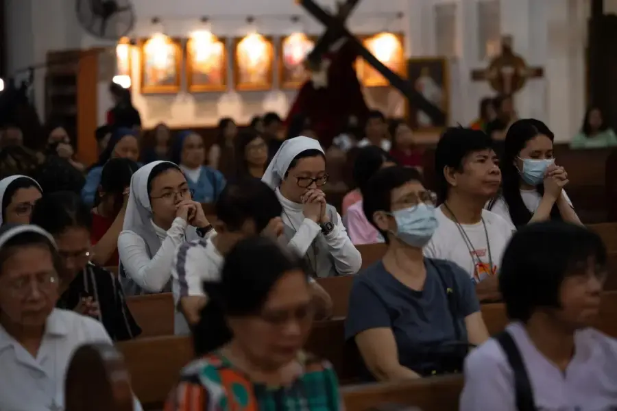 Católicos rezan por el Papa Francisco en una Iglesia de Manila, Filipinas, el jueves. Los fieles se han congregado en todo el mundo para ofrecer su devoción por la recuperación del pontífice de 88 años.