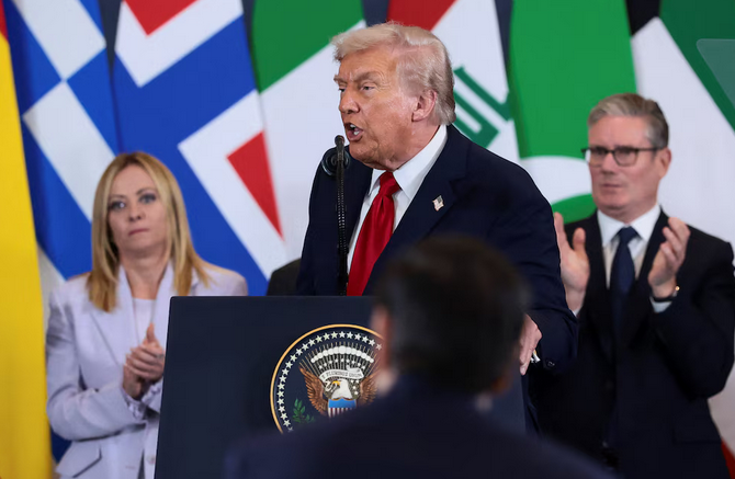 Foto.- Portada - Yoan Valat/Reuters - El Presidente de Estados Unidos, Donald Trump, durante su discurso en la cumbre de líderes mundiales sobre el fin de la guerra en Gaza en Egipto