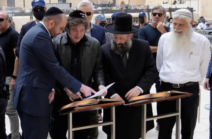 La primera actividad del Presidente Milei en territorio israelí fue la visita al Muro de los Lamentos.
