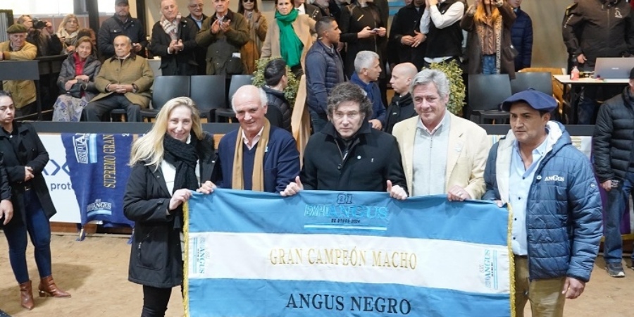 El Presidente de la Nación fue recibido en la Pista Indoor de Expo Angus de Otoño por Alfonso Bustillo, presidente de la Asociación Argentina de Angus, y Nicolás Pino, Presidente de la Sociedad Rural Argentina. Milei entregó el premio al Gran Campeón Macho Negro al Box 541 de Cabaña Moromar y Karina Milei hizo lo propio con el Reservado Gran Campeón Macho Negro, Box 476, de Cabaña Arandú.