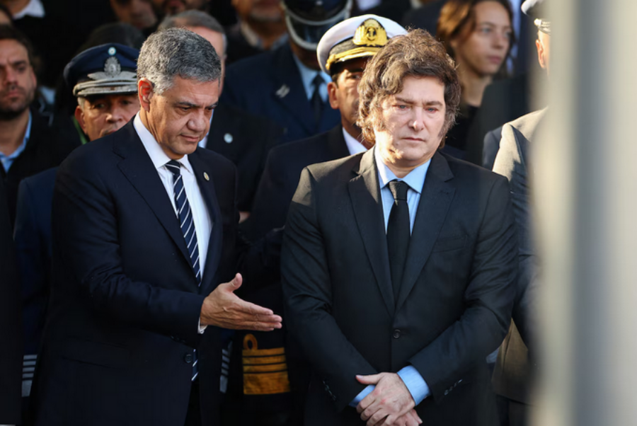 El Presidente Javier Milei compartió el acto con el Jefe de Gobierno porteño Jorge Macri, en medio de la tensión que vive la relación entre La Libertad Avanza y PRO (Foto: Reuters / Agustín Marcarian)