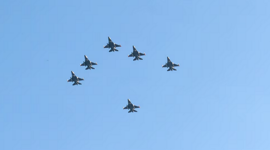 Los seis F-16 hicieron un vuelo rasante sobre la Ciudad de Buenos Aires antes de aterrizar en Córdoba. Foto: Gustavo Gavotti
