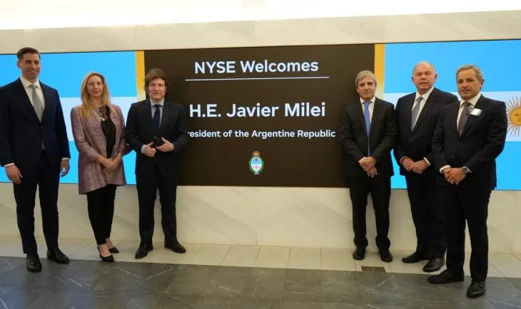 El Presidente, Javier Milei, participó de la apertura de la jornada bursátil en la Bolsa de Valores de Nueva York, donde además realizó el tradicional toque de campana que indica el inicio de operaciones.