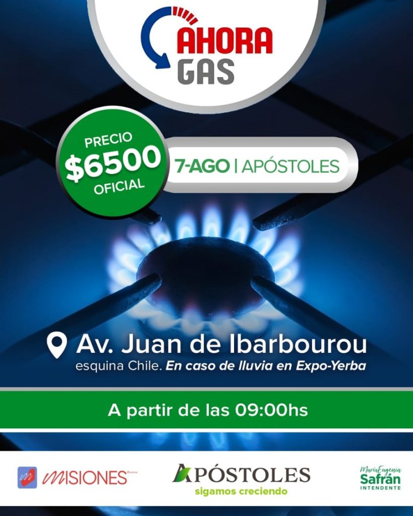 Por tal motivo la Municipalidad de la ciudad de Apóstoles invita a los vecinos a aprovechar esta oportunidad y abastecerse de gas a un precio accesible. Vale recordar que la venta es hasta agotar stock.