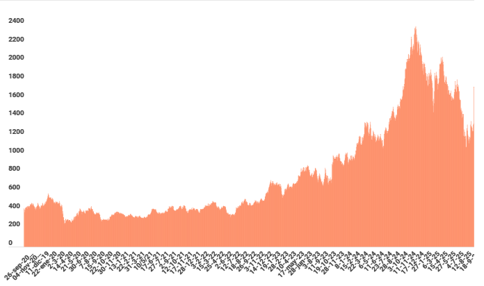 Al cierre el índice S&P Merval de la Bolsa de Comercio de Buenos Aires ascendió un 21,8% en pesos, a 2.529.084 puntos, máximo desde el 31 de enero. Medido en dólares, según la cotización del “contado con liquidación”, la ganancia fue de 30,8%, en los 1.733 puntos, el nivel más alto desde el 12 de Agosto.