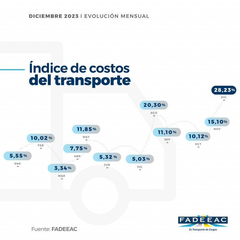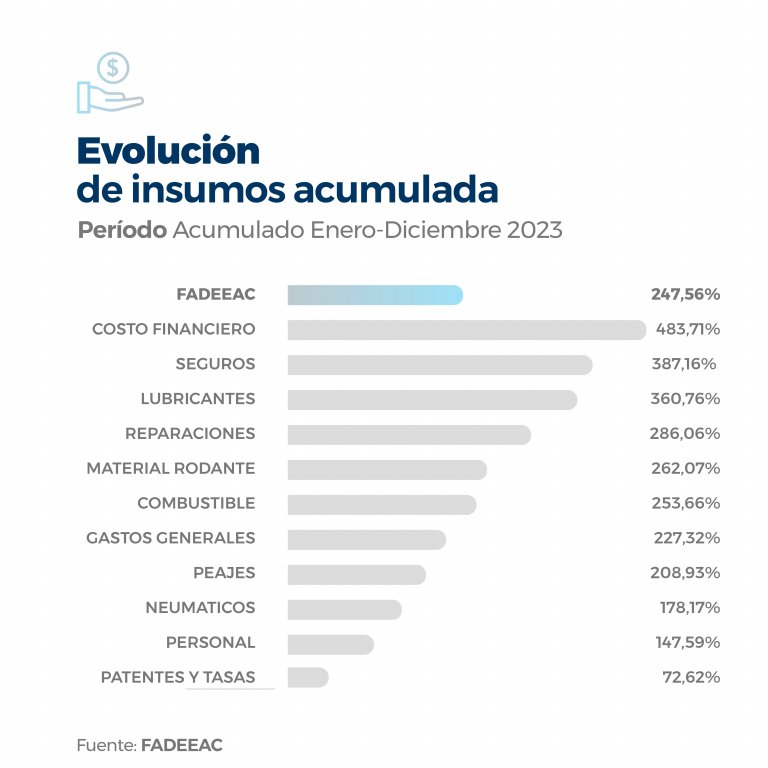 En un contexto de continuidad de alta inflación minorista y mayorista en la economía - que se prevé continúe en los próximos meses -, la maxidevaluación del tipo de cambio oficial tuvo un marcado impacto en los precios del Combustible, principal costo del sector (acumuló en 2023 254% de aumento).