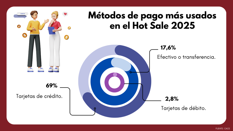 La forma de pago jugó un papel fundamental en la decisión de compra. Las cuotas sin interés volvieron a posicionarse como el incentivo principal, sobre todo en rubros de alto valor unitario. Las opciones de financiamiento en 6 y 12 pagos fueron ampliamente utilizadas, consolidando a la tarjeta de crédito como el método preferido. El 69% de las ventas se realizó mediante crédito, el 2,8% con débito y un 17,6% mediante efectivo o transferencia. Por otro lado, un 5,3% de las transacciones se concretaron a través de pasarelas de pago y más del 54% de los compradores optó por abonar en una sola cuota.