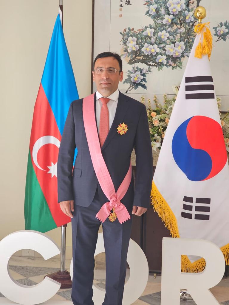 La “Orden al Mérito del Servicio Diplomático” otorgada por el presidente de la República de Corea y considerada la más alta condecoración civil del país, fue otorgada al Embajador Ramzi Teymurov por sus servicios y contribuciones al desarrollo de las relaciones de amistad entre Azerbaiyán y Corea, durante su misión como Embajador en ese país.