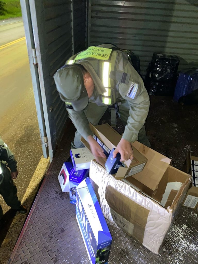 En este contexto, integrantes de la Sección Vial “Eldorado”, quienes se ubicaban en el kilómetro Nº 1.551 de la arteria nacional, entre las localidades de Colonia Victoria y Colonia Delicia, detuvieron la marcha de transporte general de cargas. Producto del control físico efectuado sobre el semirremolque, los uniformados se percataron de la presencia de una caja de cartón de gran tamaño, la cual no se encontraba identificada y presentaba un gran peso. Al momento de solicitarle al conductor ver el contenido de la misma se constató la presencia de varios aparatos electrónicos que carecían de carecían de aval aduanero ni documentación que justifique su adquisición.
