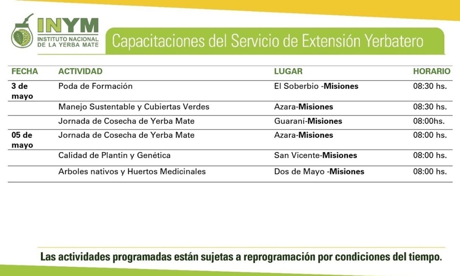 Consulte las fechas, lugares y horarios de las capacitaciones destinadas a productores y tareferos.