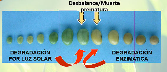 La presencia de semillas verdes son el emergente de condiciones de calor extremo y déficit hídrico En estas condiciones ambientales estresantes, el cultivo sufre un desequilibrio fisiológico que influye en la degradación de la clorofila en las semillas.