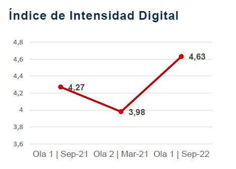 Este Índice, que se presenta en forma semestral, mide el grado de digitalización que tienen las empresas que no son del rubro tech en Argentina. Esta tercera edición arroja un crecimiento del IID de 0,65 puntos respecto a la última medición del segundo semestre 2021 (Informe de Marzo 2022). El actual IID asciende a 4,63 en una escala del 1 al 10. Aproximadamente el 90% de las empresas ya tienen conectividad a Internet, el 43% realiza ventas por eCommerce, 30% utilizan servicios en la nube, 47% utilizan Internet de las Cosas (IoT) y 22% explotan Big Data. Esto último marcó una gran diferencia versus la primera medición del IID donde solo el 12% hacía uso de estas herramientas para conocer el negocio o potenciarlo.