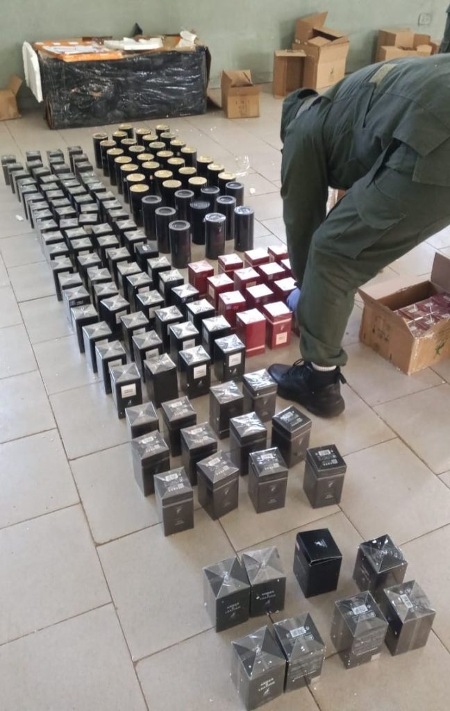 Al inspeccionar el contenido de los bultos, fueron hallados 7.500 paquetes de cigarrillos de origen extranjero, 3.556 cigarrillos electrónicos, 90 módulos de telefonía celular, 156 perfumes, 1 freidora y 2 auriculares.