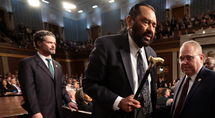 Uno de los momentos más tensos ocurrió cuando el congresista Al Green, de 78 años, interrumpió el discurso gritando “¡No tienes ningún mandato!”.