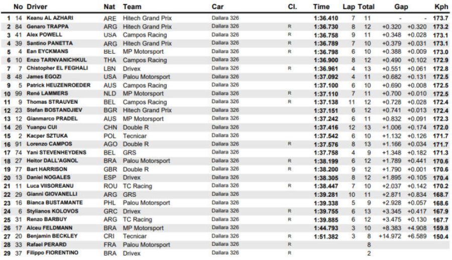 Santino Panetta desarrolló la primera tanda de entrenamientos oficiales del Winter Series 2026 de Eurcocup-3 en el Circuito de Do Algarve, Portimao (Portugal). El joven de Campana, piloto del equipo Hitech, culminó cuarto en los primeros ensayos del fin de semana, donde giró 10 vueltas y se ubicó a 0.379 del líder, el armenio Keanu Al Azhari.
