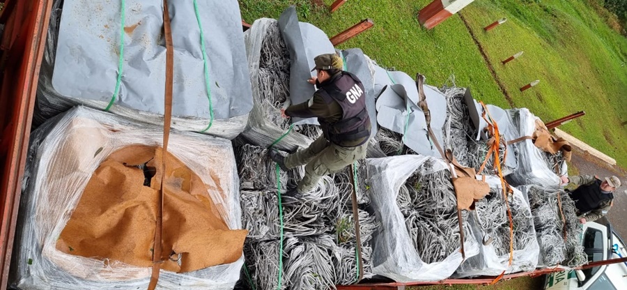El camión, el cual ostentaba una chapa patente brasilera, transporta 10 pallets, cada uno de los cuales contenía material metálico compactado, cuyas características son similares a los cables eléctricos de alta tensión. Producto del régimen cambiario, el tráfico ilegal de este tipo de producto es redituable para la actividad delictiva, el cual es obtenido mediante la vandalización de obras de arte y tendidos eléctricos.