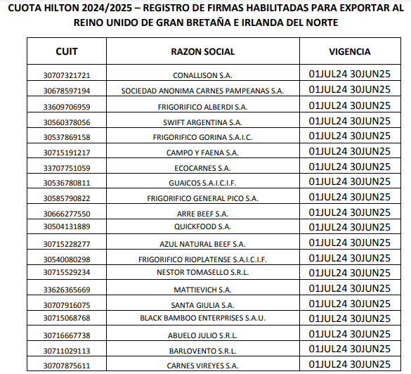 En cuanto a las empresas habilitadas para enviar carne al Reino Unido, son las siguientes: