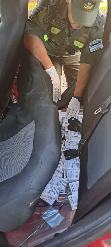 Asimismo, efectivos del Escuadrón 7 Paso de los Libres “Cabo Misael Pereyra” procedieron con la apertura de 11 encomiendas, dentro de las cuales se encontraban acondicionados 464 cigarrillos electrónicos, 140 esencias para vapers, 90 filtros para cigarrillos electrónicos, 70 baterías para celulares, 70 dispositivos conversores SMART y 586 frascos de suplementos vitamínicos. La mercadería era de origen extranjero y carecía del aval aduanero correspondiente.