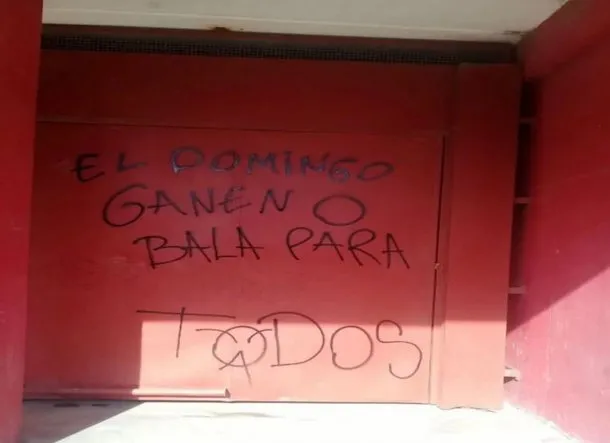 Por estas horas aparecieron amenazas en pintadas, firmadas por los socios: "El día que matemos a un dirigente van a dejar de robarnos" y "El domingo ganen o balas para todos".