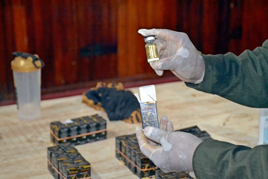 El contenido de la paquetería consistía en anabólicos esteroides, hormonas de crecimiento, y testosterona distribuidos en 55 frascos con 4.540 pastillas y 94 ampollas, sustancias utilizadas comúnmente en el mundo del entrenamiento físico y culturismo como métodos para incrementar la masa muscular y el rendimiento deportivo.