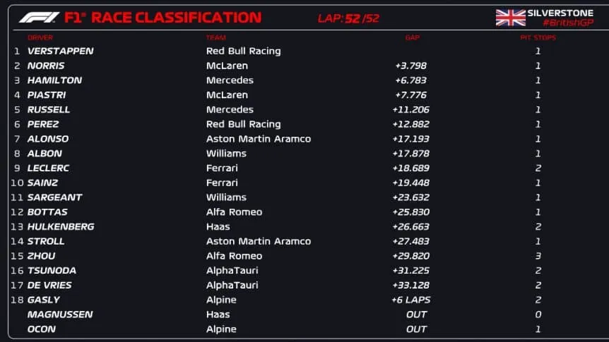 El piloto de Red Bull finalizó primero en el circuito de Silverstone y se aleja en la tabla de posiciones.
