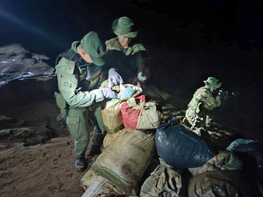 Al aproximarse al lugar, y una vez finalizadas actividades de rastrillaje en las cercanías, se contabilizaron 21 bolsas de arpillera llenas de cogollos vegetales que emanaban un fuerte olor similar al de la marihuana.