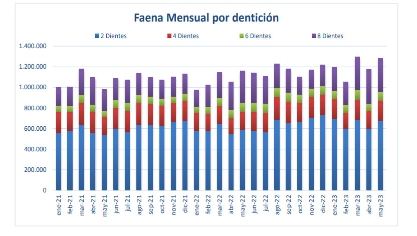 En los primeros cinco meses del año 2023, el reporte de ABC indicó que se faenaron 6,0 millones de bovinos; un (+12,0%) que los 5,36 millones que se habían faenado entre enero y mayo de 2022. “Los mayores aportes al incremento de la faena provienen de los machos de dos dientes, que superaron en 185 mil cabezas la faena acumulada en los primeros cinco meses del año pasado, por las hembras de ocho y más dientes, cuya faena superó en más de 174 mil cabezas a la registrado entre Enero y Mayo del año 2022, y por las hembras de dos dientes que acumularon 125 mil cabezas faenadas que en el mismo periodo del año pasado”, especificaron.