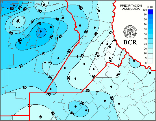 Los principales valores registrados por la red de estaciones meteorológicas de la entidad rosarina fueron en Colonia Almada (70 mm); y Bell Ville y Bengolea (54). Pero esta tendencia se extendió también hacia Santa Fe, con Montes de Oca recibiendo 39 milímetros, y Rufino 34, lo mismo que General Pinto, en el noroeste de Buenos Aires.