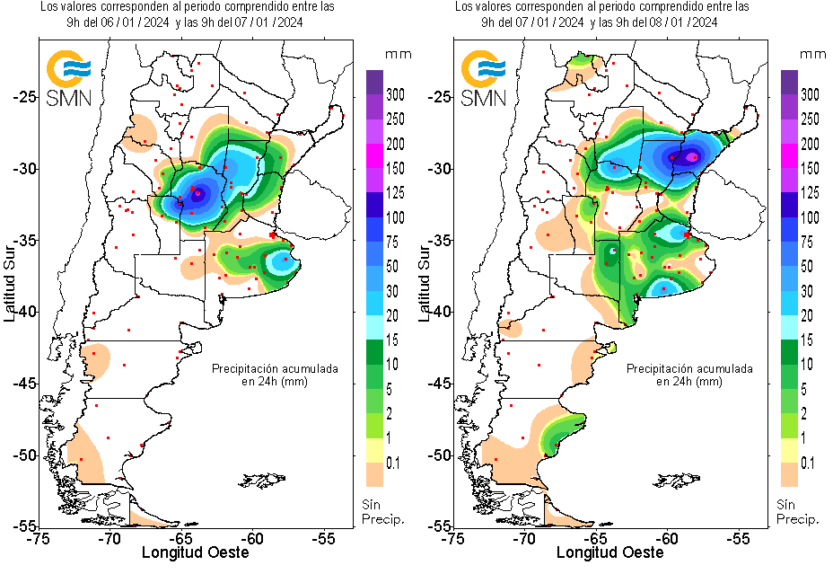 De manera puntual, en la localidad de Pilar (Córdoba), donde el SMN tiene un Observatorio, se registraron 140 milímetros en apenas un par de horas.